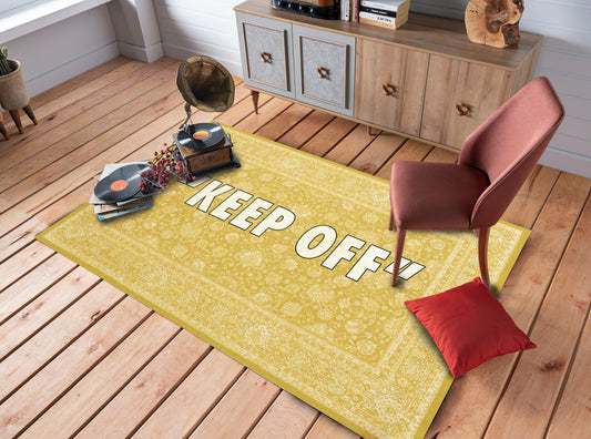 Yellow Color Keep Off Text Rug, Floral Carpet, Turkish Motif Living Room Mat, Keepoff Printed Decor
