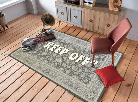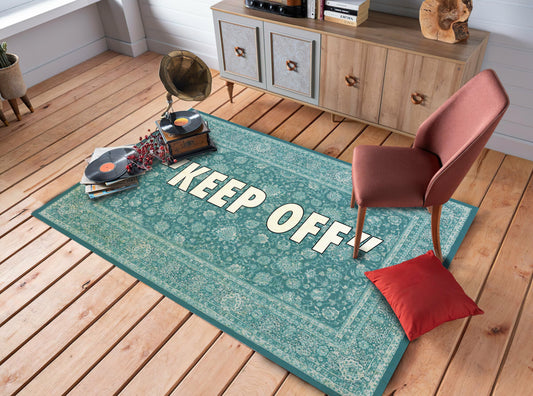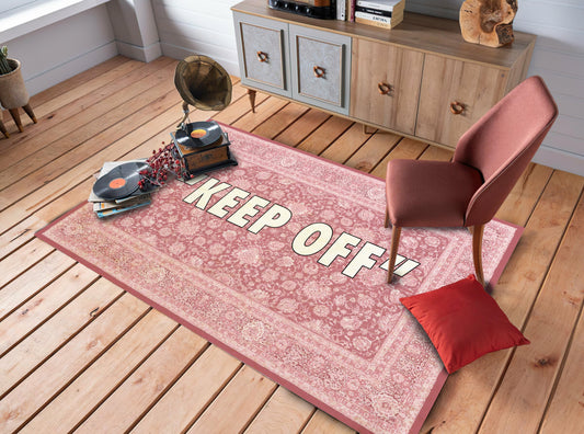 Floral Printed Rug, Keep Off Text Carpet, Sneaker Room Mat, Keepoff Themed Carpet