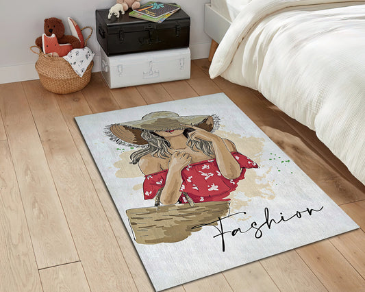 Fashion Rug, Girl Art Carpet, Summer Home Decor, Boho Style Mat, Modern Rug