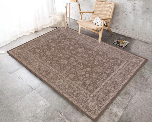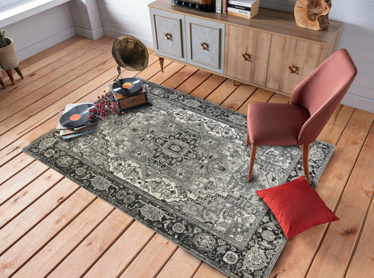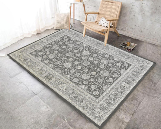 Grey Color Ottoman Rug, Classical Motif Carpet, Luxury Living Room Mat, Retro Style Oriental Home Decor