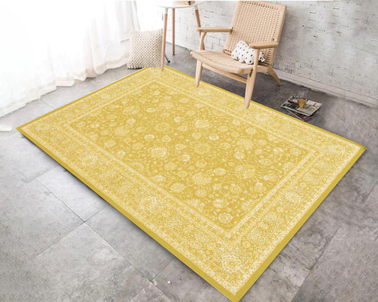Yellow Bohemian Rug, Modern Themed Carpet, Flowers Turkish Motif Mat, Kitchen Decor