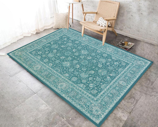 Blue Classical Art Rug, Bohemian Style Carpet, Oriental Mat, Luxury Living Room Rug