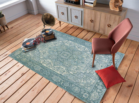 Victorian Style Floor Rug, Ethnic Art Carpet, Bohemian Home Decor, Vintage Classical Motif Mat