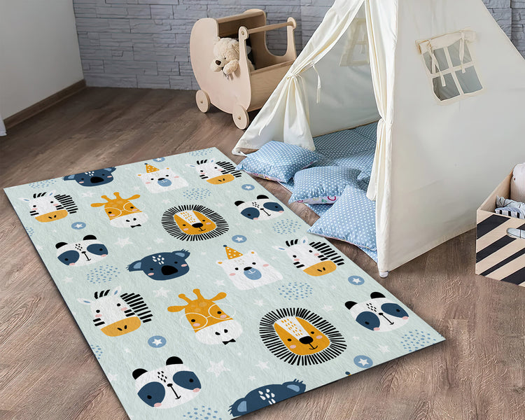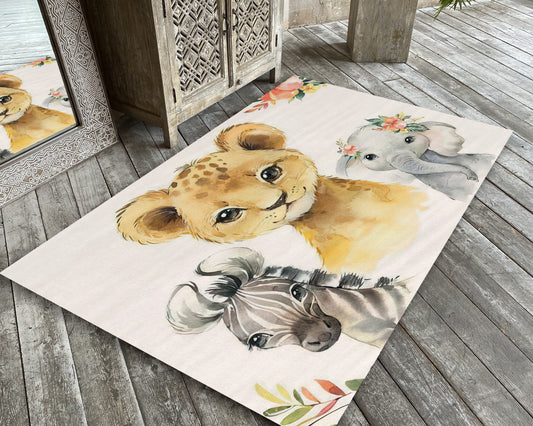 Baby Animals Rug, Lion, Zebra, Elephant, Cute Baby Room Carpet, Nursey Play Mat, Baby Gift