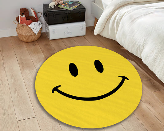 Colorful Emoji Face Rug, Kids Room Carpet, Happy Face Mat Smiley Decor