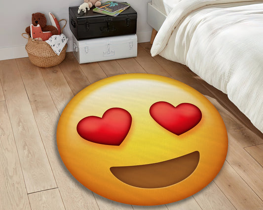 Heart Eye Emoji Rug, Playful Emoticon Mat, Smiley Face Carpet, Kids Room Decor