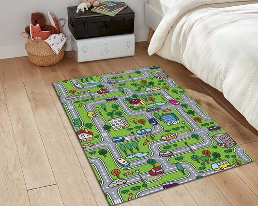 Green City Road Map Rug, Children Room Carpet, Toddler Mat, Kids Decor, Baby Gift