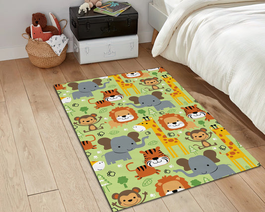 Cute Lion Rug, Elephant Pattern Carpet, Monkey Mat, Kids Room Carpet, Animal Decor, Baby Gift