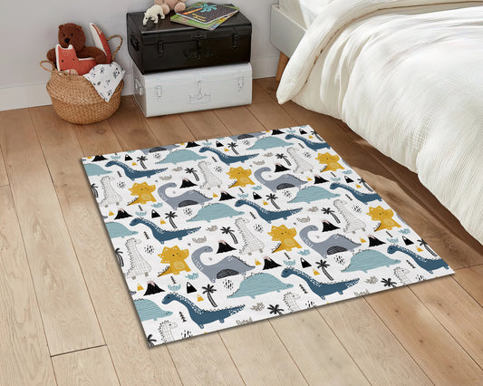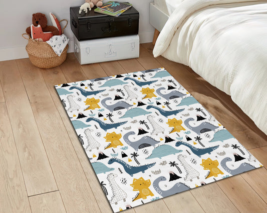 Dino Pattern Rug, Dinosaurs Carpet, Nursery Animal Decor, Baby Shower Mat, Baby Gift