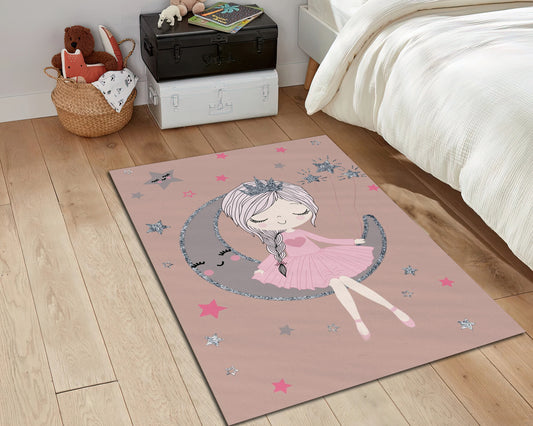 Princess Themed Rug, Moon and Star Carpet, Girl Room Decor, Nursery Rug, Baby Room Mat