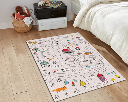 City Map Printed Kids Rug, Baby Room Carpet, Toddler Mat, Nursery Decor, Baby Gift
