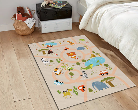 Animal Safari Rug, City Road Map Carpet, Baby Animal Zoo Printed Mat, Children Room Decor, Nursery Play Mat