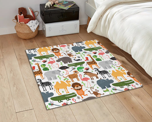 Cute Animal Pattern Rug, Colorful Nursery Mat, Kids Room Carpet, Baby Shower Decor, Baby Gift