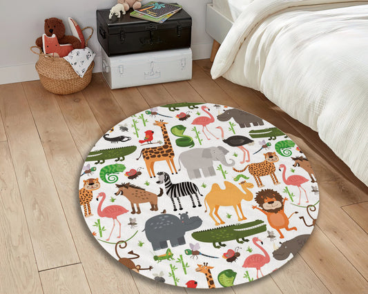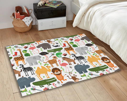 Colorful Animal Rug, Zoo Animal Carpet, Nursery Play Mat, Children Room Decor, Baby Gift