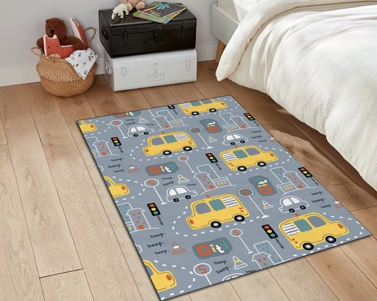 Baby Room Rug, Car Pattern Carpet, Nursery Decor, Kids Room Mat, Baby Gift