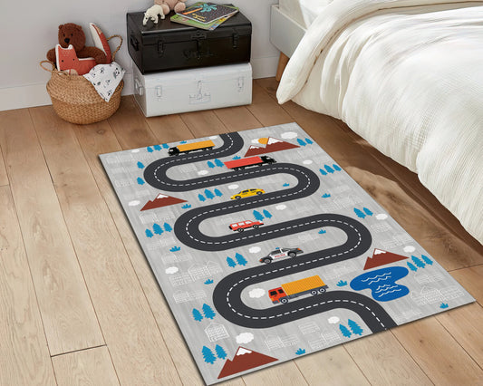 Car Pattern Rug, Boys Room Mat, City Road Map Carpet, Nursery Play Mat, Baby Gift