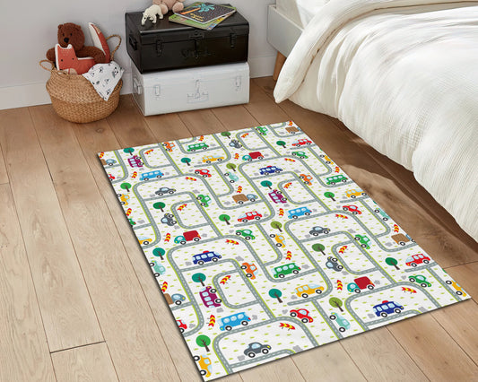 Car Pattern Rug, Kids Room Carpet, City Map Decor, Nursery Rug, Baby Gift