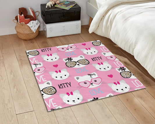 Pink Cat Pattern Rug, Hello Kitty Carpet, Girl Room Mat, Baby Shower Decor, Animal Rug