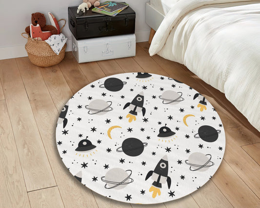 UFO Pattern Rug, Galaxy Mat, Kids Room Carpet, Nursey Play Decor, Planets Themed Rug