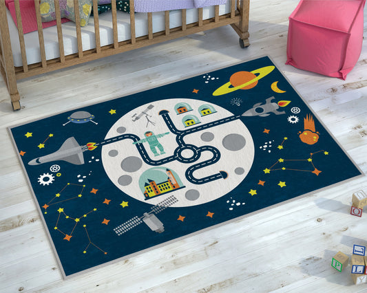 Colorful Space Rug, Galaxy Carpet, Kids Room Mat, UFO Themed Rug, Nursery Decor
