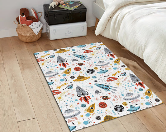 UFO Pattern Rug, Space Decor, Galaxy Carpet, Nursery Play Mat, Kids Room Rug
