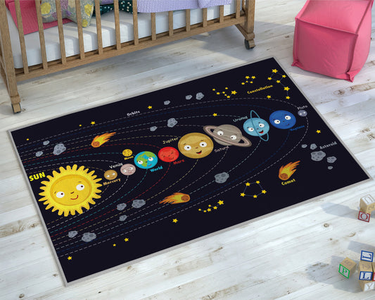 Planets Themed Rug, Galaxy Carpet, Orbits Decor, Nursery Play Mat, Solar System Rug, Kids Room Carpet