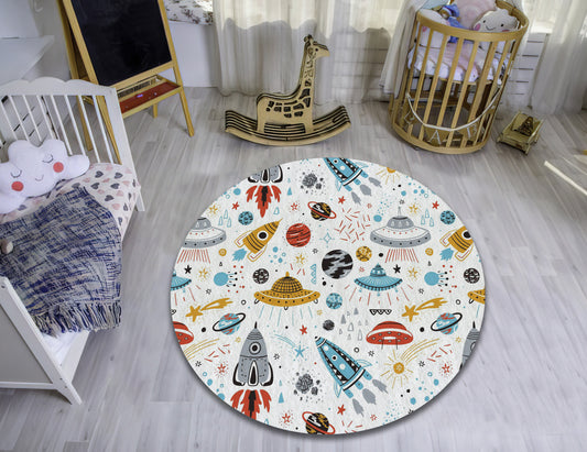UFO Themed Rug, Space Room Carpet, Spacecraft Mat, Kids Room Rug, Nursery Play Mat