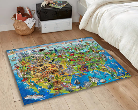 USA Map Printed Rug, United State of America Map Carpet, Children Room Mat, Nursery Decor