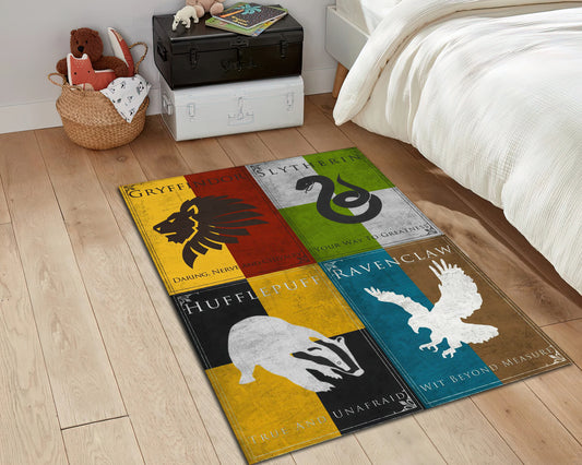 Vintage Harry Potter Rug, Fantastic Movie Mat, Gryffindor, Hufflepuff, Ravenclaw, Slytherin, Hogwarts Carpet