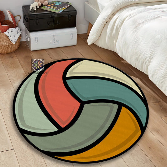 Volleyball Ball Rug, Sport Round Mat, Play Room Carpet, Nursery Round Rug