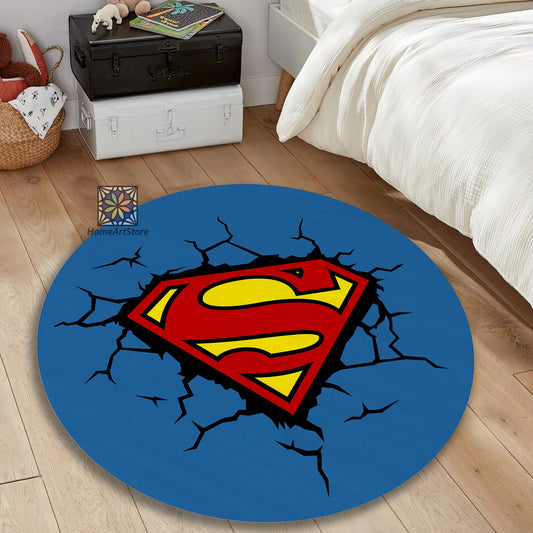 Superman Logo Rug, Vintage Superhero Carpet, Nursey Play Mat, Marvel Room Decor, Avengers Gift