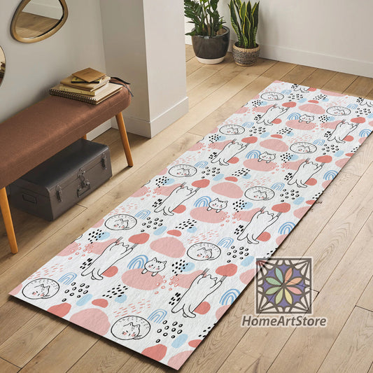 Cartoon Cats Pattern Runner Rug, Cute Cat Kitchen Runner Rug, Hallway Runner Carpet, Corridor Runner Mat