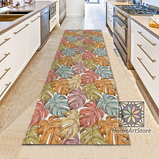 Monstera Leaves Pattern Rug, Botanic Kitchen Runner Rug, Tropical Home Decor, Hawaiian Carpet