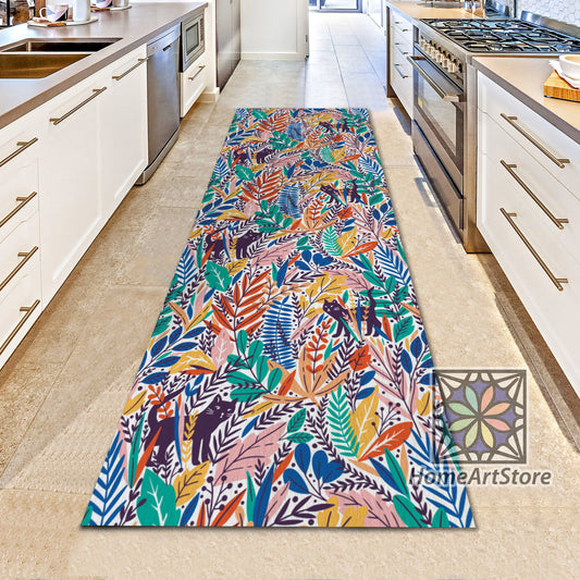 Colorful Leaves Runner Rug, Tropical Home Decor, Kitchen Runner Carpet, Hawaiian Hallway Runner Mat, Botanical Decor