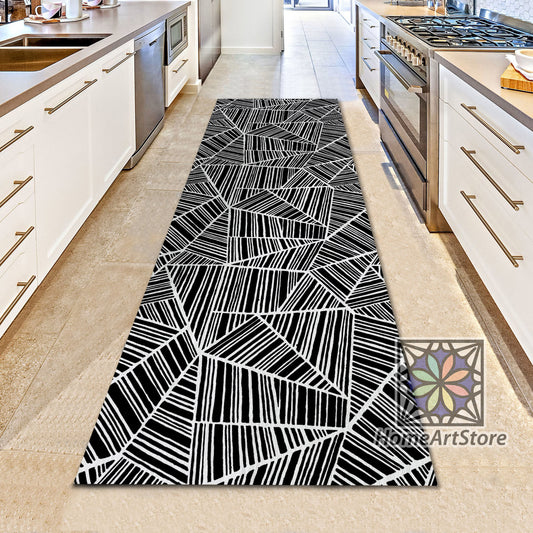 Black and White Striped Runner Rug, Geometric Kitchen Carpet, Hallway runner Mat, Modern Home Decor