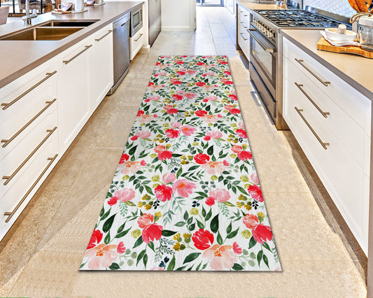 Tropical Runner Rug, Colorful Flowers Hallway Carpet, Floral Runner Mat, Kitchen Decor