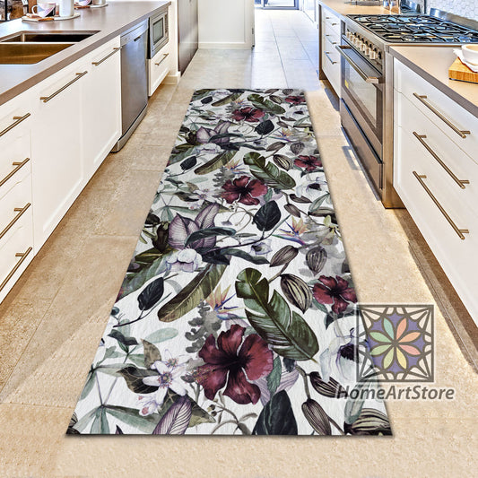 Magnolia Themed Runner Rug, Tropical Themed Kitchen Carpet, Boho Home Decor, Hawaii Hallway Runner Rug