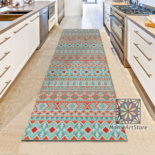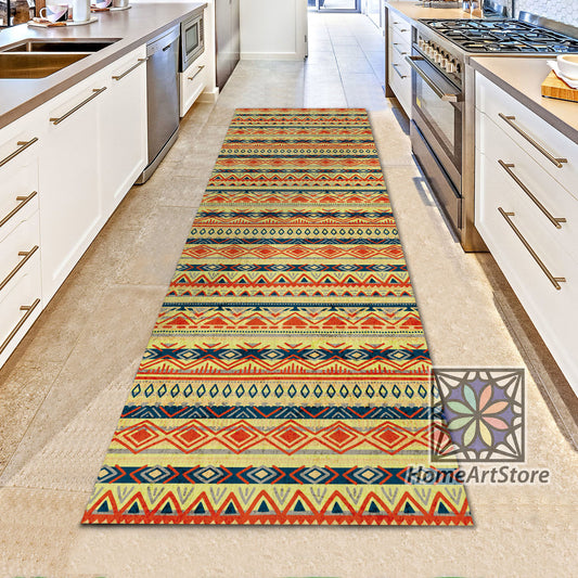 Tribal Themed Runner Rug, Kitchen Ethnic Runner Rug, Hallway Runner Carpet, Aztec Decor, Bohemian Carpet