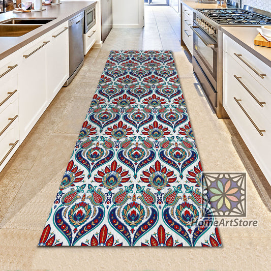 Turkish Style Runner Rug, Ottoman Motif Runner Carpet, Colorful Kitchen Runner Mat, Hallway Carpet, Arabic Decor