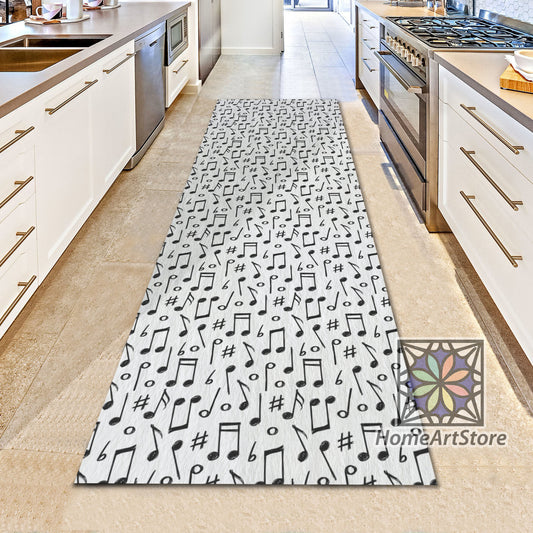 Music Notes Pattern Runner Rug, Boho Style Carpet, Music Art Decor, Black and White Music Runner Rug