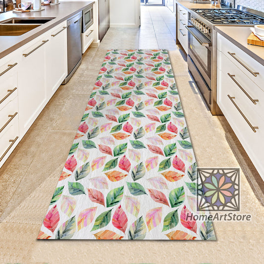 Colorful Leaves Pattern Rug, Kitchen Runner Rug, Boho Decor, Leaf Runner Carpet, Hallway Runner Mat