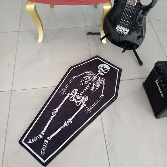 Skeleton Rug - Coffin Shaped Carpet for Gothic Decor, Horror Rug, and Scary Mat