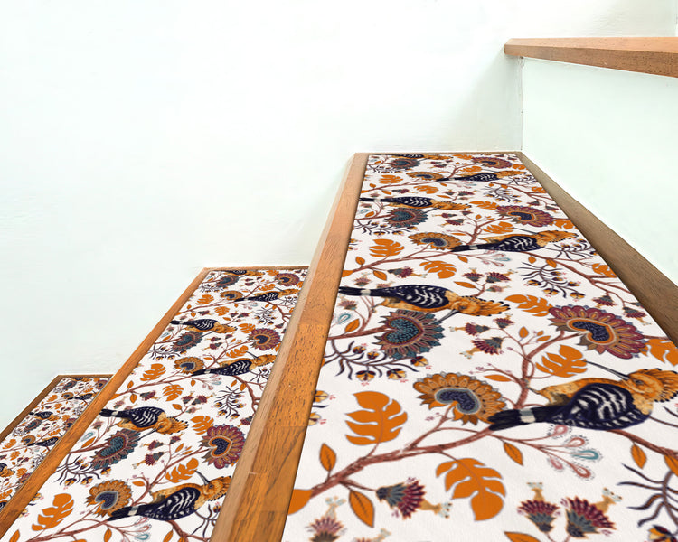 Tropical Birds Themed Stair Step Rugs, Flowers Pattern Stair Mats, Hawaiian Stair Tread Carpet, Bohemian Home Decor