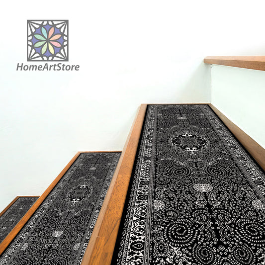 Scandinavian Stair Rugs, Black and White Boho Style Stair Mats, Cool Stair Tread Carpet, Nonslip Backing Modern Step Rugs