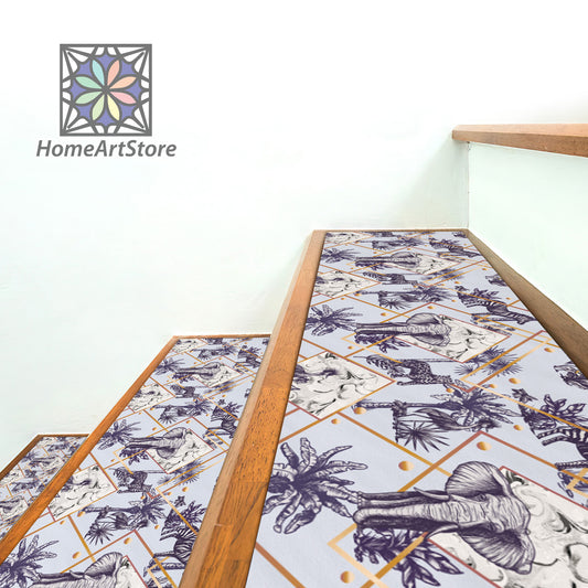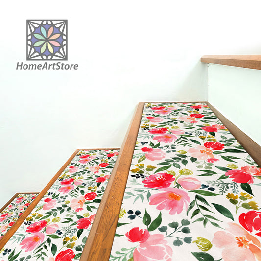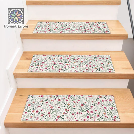 Floral Pattern Stair Rugs, Boho Style Decor, Modern Stair Step Carpet, Minimal Step Rugs