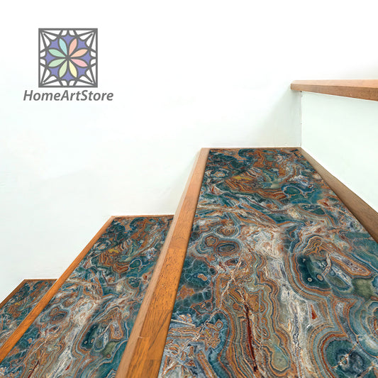 Marble Stone Pattern Step Rugs, Ceramic Tile Printed Stair Mats, Nonslip Mosaic Step Mats