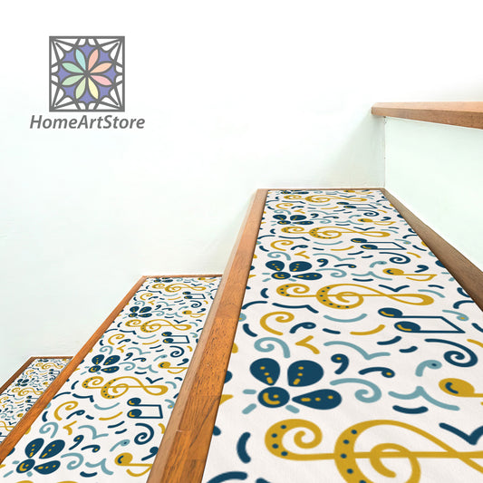 Musical Notes Pattern Stair Rugs, Bohemian Stair Tread Mats, Colorful Boho Mat, Musician Decor, Home Decor