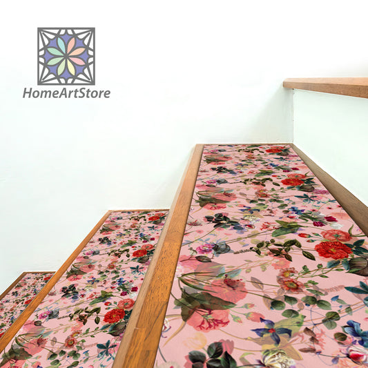 Powder Color Floral Stair Tread Rugs, Exotic Stair Step Carpet, Stylish Step Mat