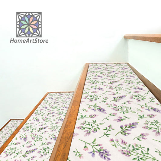Purple Flower Pattern Stair Rugs, Alfalfa Flower Step Mats, Botanical Decor, Modern Stair Step Carpet