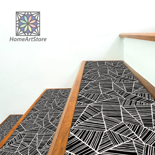 Black and White Geometric Stair Rugs, Boho Style Stair Tread Carpet, Stylish Stair Mats, Minimalist Decor